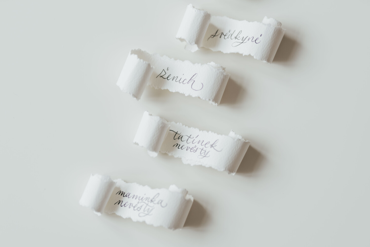 Elegantní kaligrafie na míru – popisy obálek, certifikátů, dárků, pozvánek pro firmy, či jiných Vašich přání. Profesionální zpracování v ateliéru je ideální pro PR balíčky, branding nebo personalizované firemní materiály.