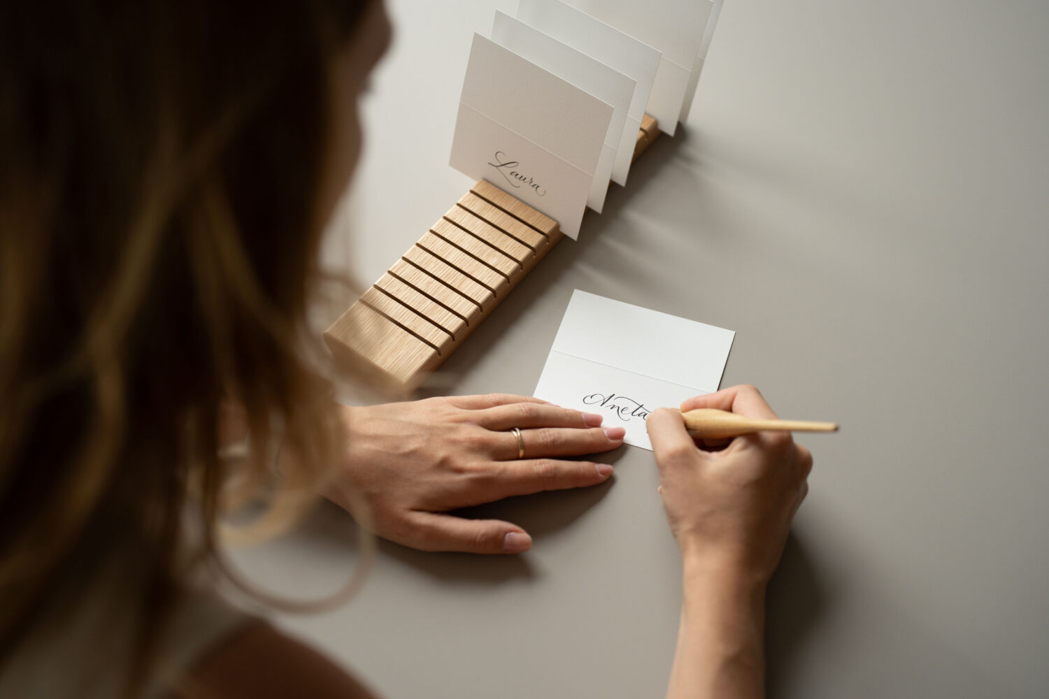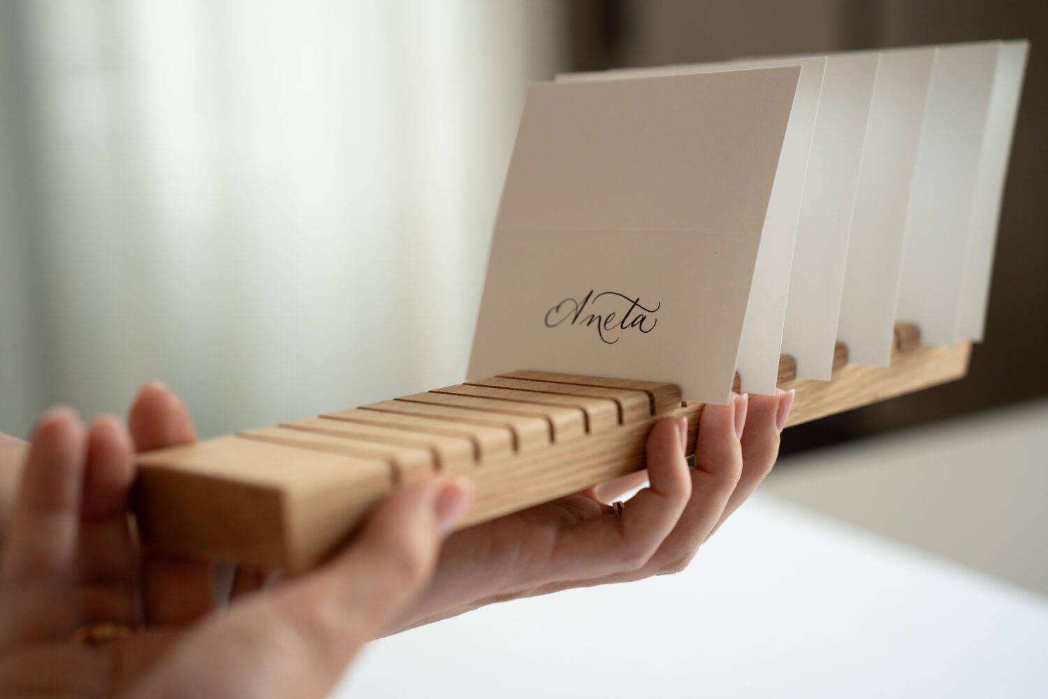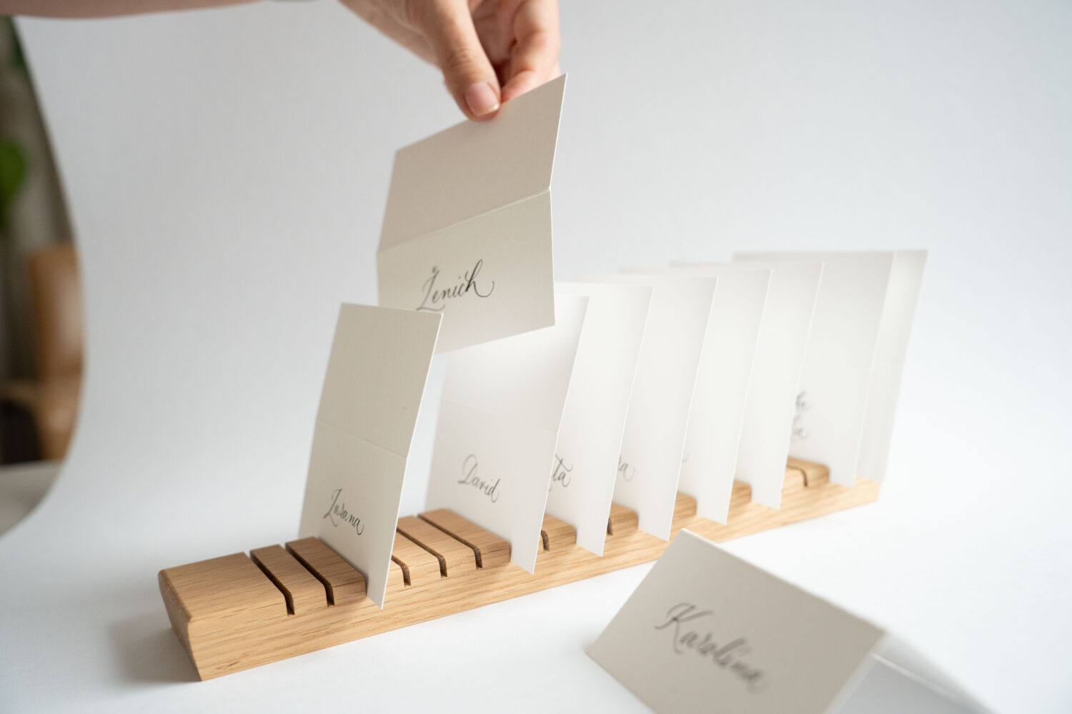 Pokud jste někdy psali vícero jmenovek, pozvánek nebo obálek, jistě víte, kolik prostoru karty zaberou. Sama to znám moc dobře. A proto jsem si nechala vyrobit stojánek na schnutí jednotlivých kartiček a rozhodla jsem se o něj s vámi podělit.