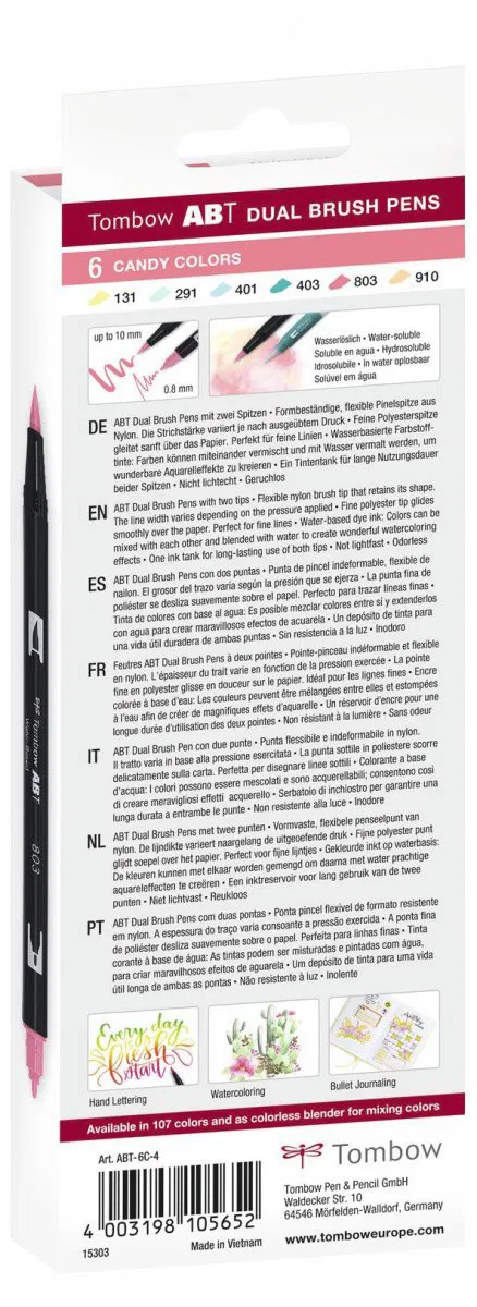 Sada Tombow ABT Dual Brush Pen – Candy Colours je jako malá pastelová bonboniéra pro všechny, kdo milují jemné barvy a kreativní tvoření. Každý fix má dva hroty – tenký pro přesné linky a pružný štětcový hrot, který je ideální na větší tahy, vybarvování i krásný lettering.